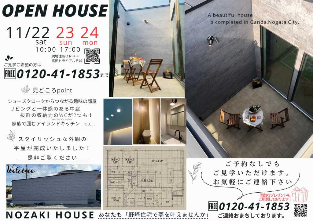 【終了いたしました】『中庭のある平屋』完成見学会開催のお知らせ